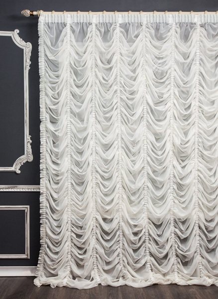Le tissu semi-transparent, réalisé sous forme de maille ou de volants, est idéal pour la couture de rideaux français. Elle abat parfaitement, diffuse la lumière, transforme l'intérieur. Ne brille pas, cache ce qui se passe dans la maison. Il se salit rapidement, accumule de l'électricité statique, se brise facilement.
