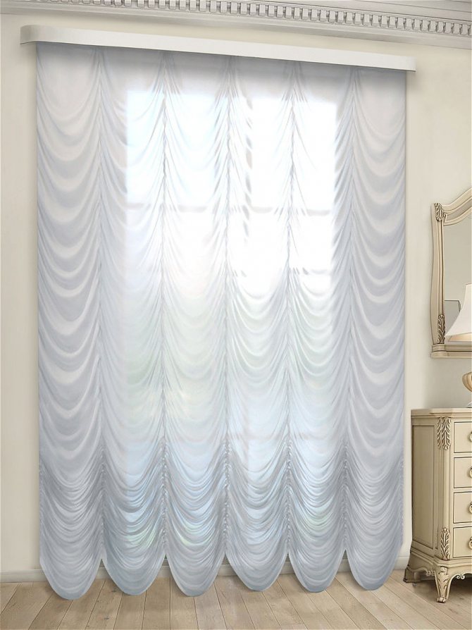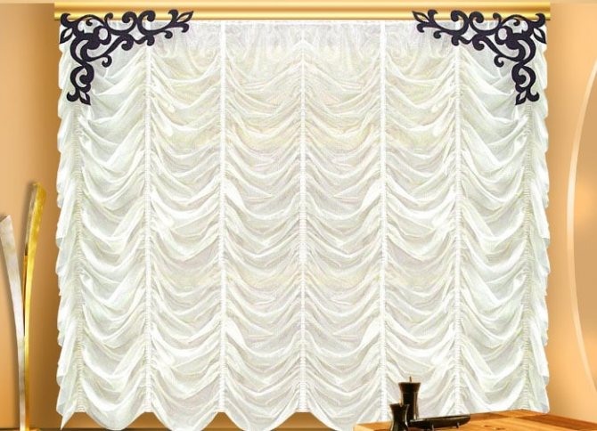 Les rideaux français ne doivent pas être confondus avec les rideaux autrichiens. Les modèles ressemblent vraiment à des plis courbes, le principe du mécanisme de levage, une toile solide.