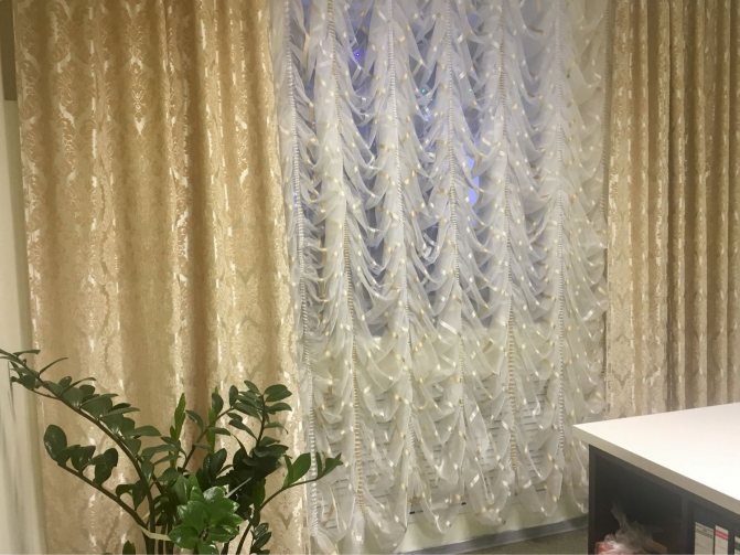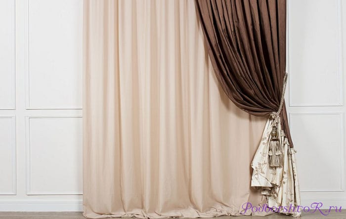 La couleur des rideaux avec des plis est choisie selon le goût. La teinte peut être en contraste ou combinée avec: