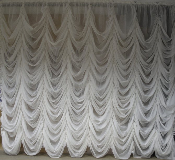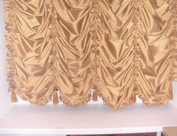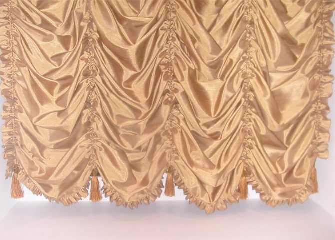 Pour leur fabrication, une toile monobloc est utilisée. Les cordons sont passés à travers les rangées de boucles sur le côté sordide. Si vous tirez dessus, le tissu lui-même se plie en plis doux, formant des pétoncles au bas.