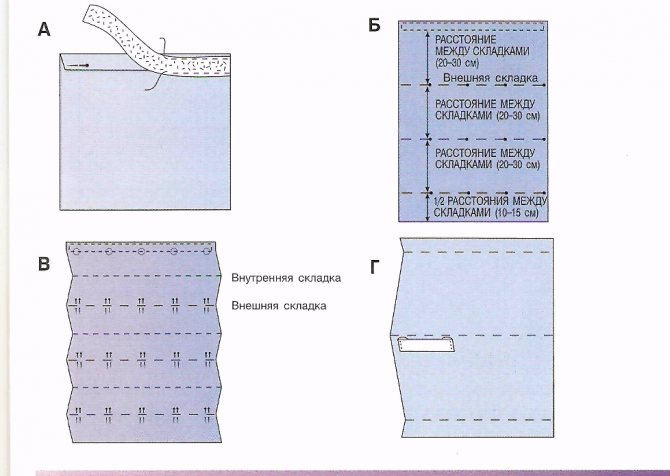 La couture de rideaux français selon cette instruction peut être faite assez rapidement. Vous devez d'abord préparer le tissu, le découper, surfiler les bords. Plus loin: