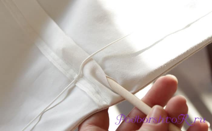 - insérez un cordon dans les coutures le long des bords, formez des plis;