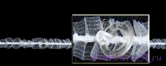 - Tissu translucide léger. Nous avons cet organza blanc. Mais vous, en fonction de l'endroit où il est censé accrocher le futur rideau, et des caractéristiques de l'intérieur, vous pouvez en choisir un autre. L'essentiel est qu'il ne soit pas trop dense et bien drapé.