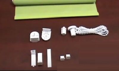 | Pour l'installation d'une structure montée sur une fenêtre ouvrante, les pièces suivantes seront nécessaires: le volet roulant lui-même sur le rouleau, des supports, un mécanisme de levage à chaîne, des pinces de fixation et du ruban adhésif double face spécial. |
