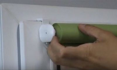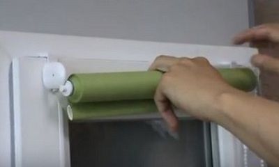 | Après cela, un rouleau avec un rideau est inséré dans les supports fixés sur la fenêtre. Ceci est fait très soigneusement afin de ne pas endommager les pièces en plastique. |