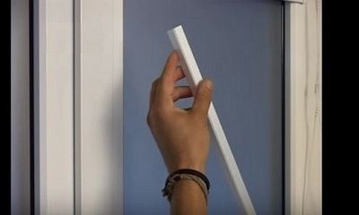 | En outre, le montage est effectué - la structure assemblée est mise en place avec des supports sur la partie supérieure de la fenêtre ouverte et nivelée, c'est-à-dire que la position correcte du rideau sur le cadre de la fenêtre est déterminée. |