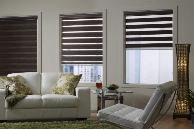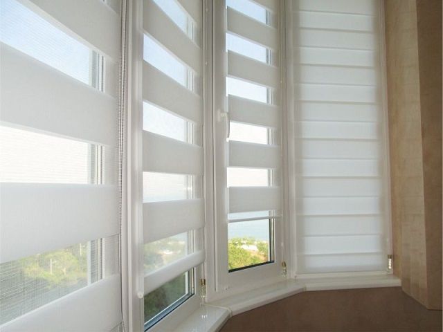 Si vous ne voulez pas voir de rayures sombres sur la fenêtre pendant la journée, vous pouvez acheter une option où les rayures blanches alternent avec des rayures transparentes.