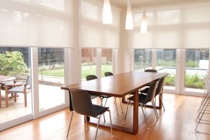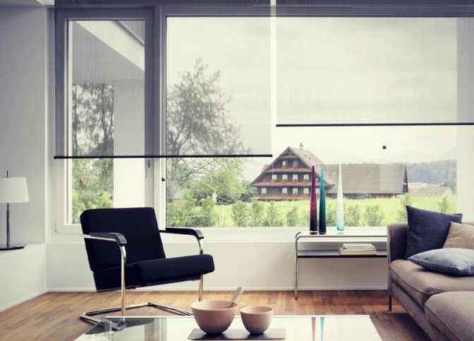 Le rideau est compact, car il est monté dans l'ouverture de la fenêtre, et du fait qu'il est proche du verre, il y a une protection maximale contre la lumière qui le traverse. Par conséquent, même dans une pièce située du côté ensoleillé, vous pouvez créer un environnement confortable dans la chaleur la plus intense.