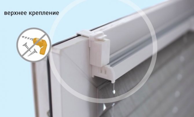 - Installation dans une ouverture de fenêtre. La méthode est pertinente pour les structures coulissantes ou pour celles qui s'ouvrent vers le haut. La distance entre la pente supérieure et le vantail doit être d'au moins 5 cm.