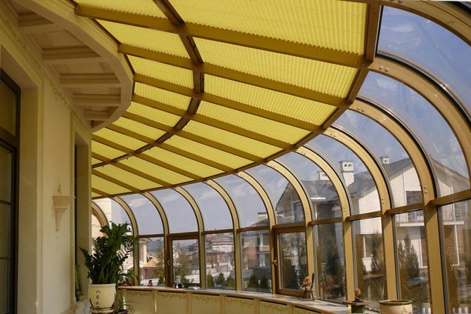 Ils diffèrent du type précédent en ce qu'ils sont roulés dans un rouleau. Convient à tous les types de fenêtres standard. - Avec la présence d'un biseau. Le nom parle de lui-même - pour les fenêtres biseautées et les structures en forme de dôme. Ils sont montés à la fois au plafond et directement sur le cadre de la fenêtre. Il est nécessaire de fixer les plis aux lanterneaux s'il y a des guides latéraux. Un système spécial sera nécessaire pour éviter l'affaissement.