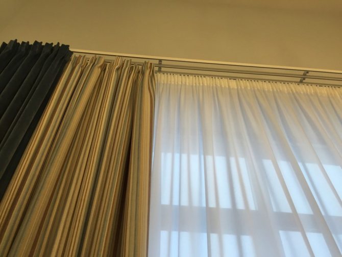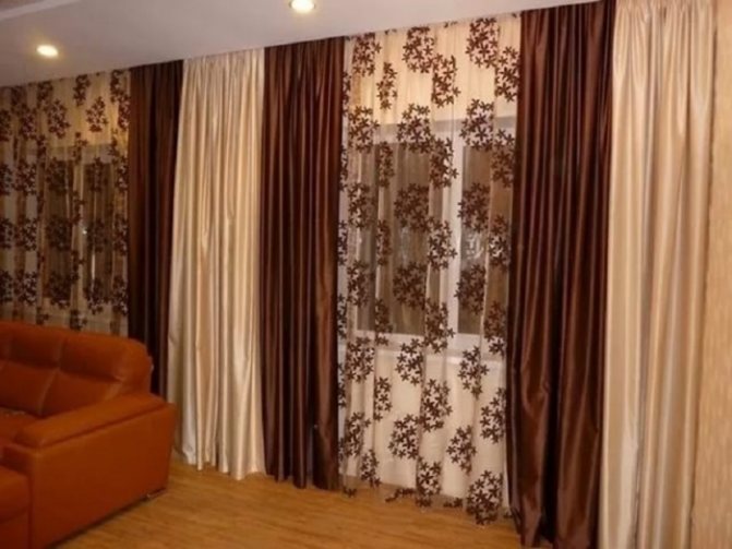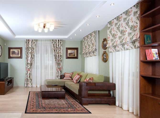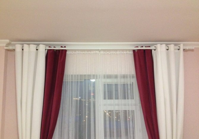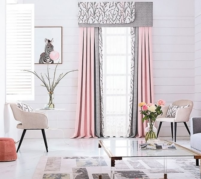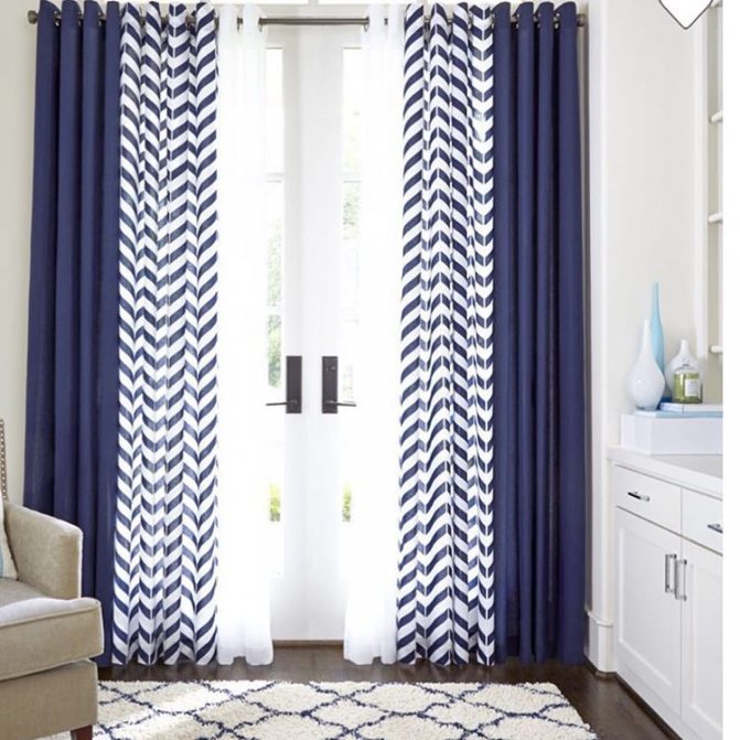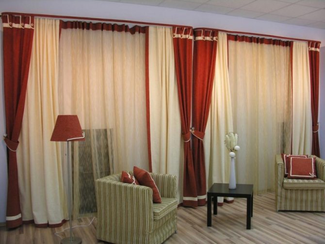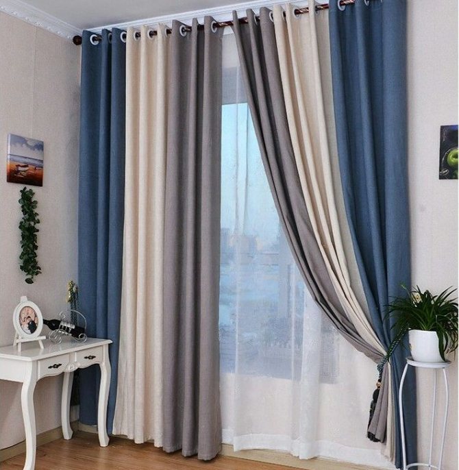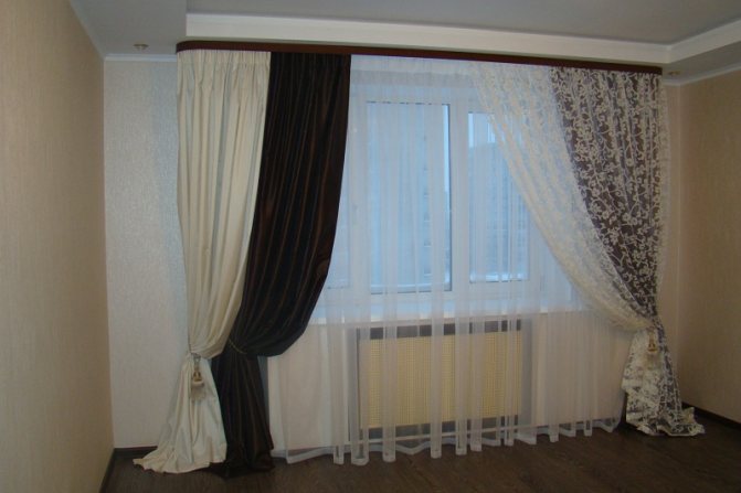 En plus de différents matériaux, il est possible de combiner différents types de rideaux dans une même composition. Par exemple, des rideaux et des rideaux classiques, des rideaux basés sur des motifs français ou londoniens.
