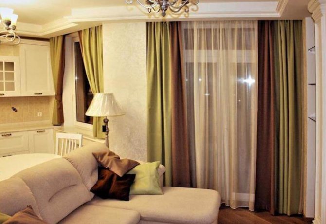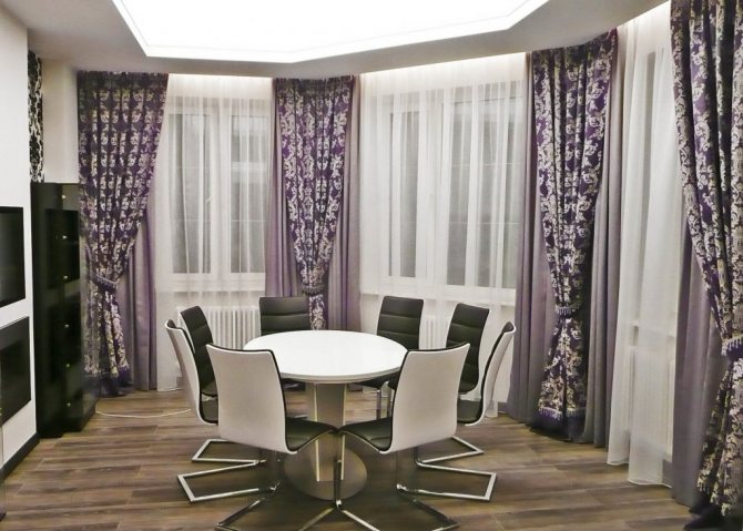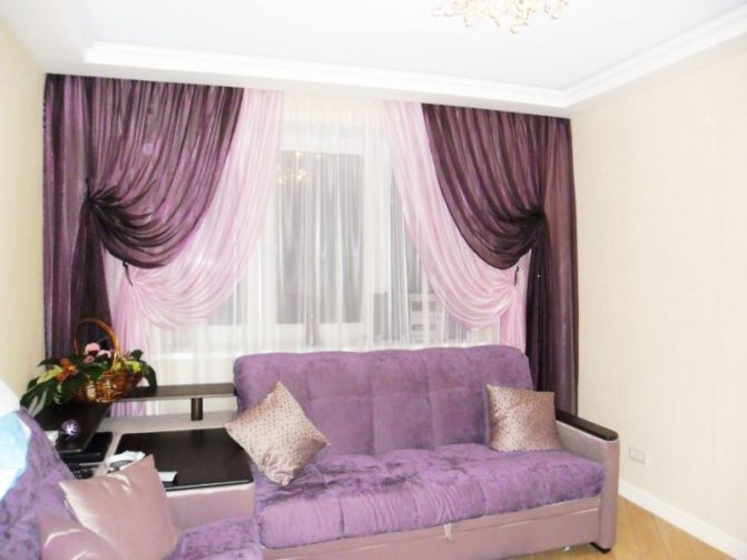 - espace séparé - convient aux appartements où différentes zones sont faites dans des styles différents. En conséquence, les rideaux ne doivent en aucun cas se croiser;