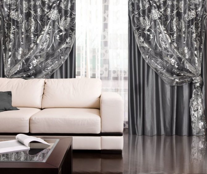 Quels types de tissus de rideaux ne sont pas utilisés à notre époque - ce sont la soie, l'organza, le lin, le coton, la laine, les synthétiques, etc. Les textures des matériaux sont également très différentes les unes des autres - lisses et mates, imprimées, mailles, ondulées.