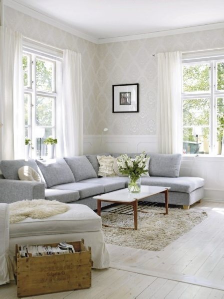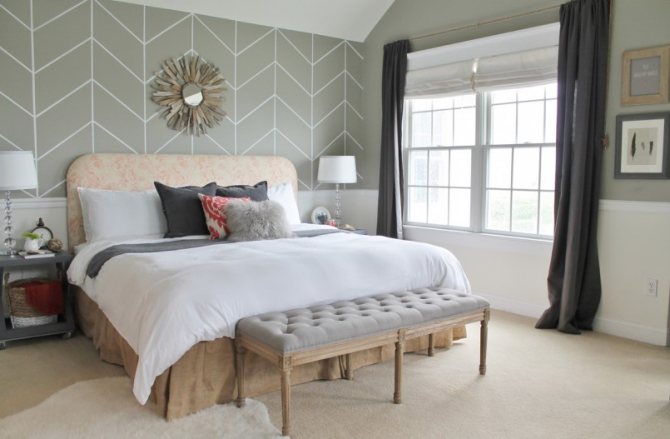 En fonction du nombre d'ouvertures de fenêtres, de la hauteur des plafonds ou de la largeur de la pièce, des éléments supplémentaires sont utilisés. L'utilisation de larges rayures, ou d'un motif végétal, contribue à un changement visuel des paramètres, masquant les défauts.