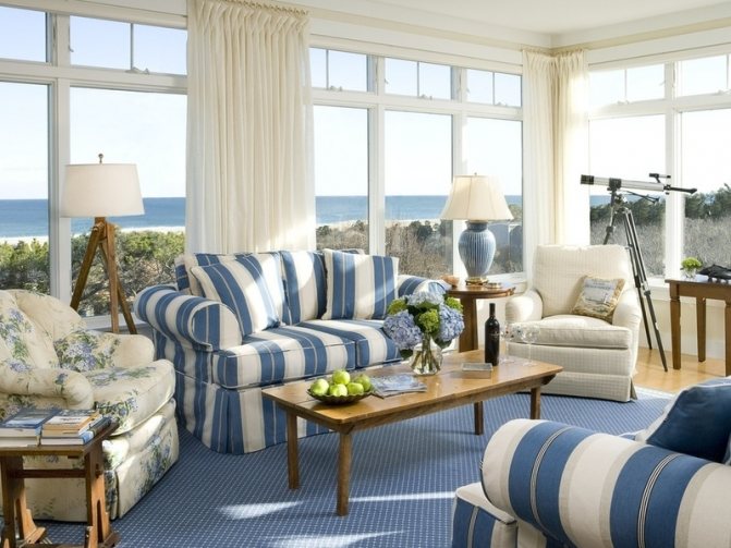 La chose principale lors du choix des rideaux pour une zone de loisirs est leur beauté et leur compatibilité avec le style de la pièce dans son ensemble. La fonctionnalité s'estompe à l'arrière-plan.