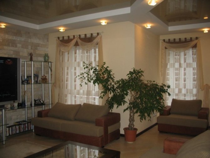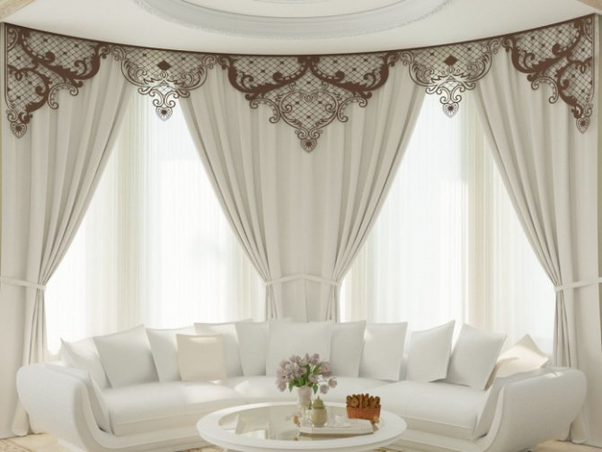 Il n'est pas rare que des textiles avec des lambrequins soient introduits dans la conception du salon. Ils ne sont pas seulement utilisés pour les classiques. Ils sont faits de n'importe quel matériau, pour cette raison, nous allons introduire un élément décoratif dans n'importe quel style.