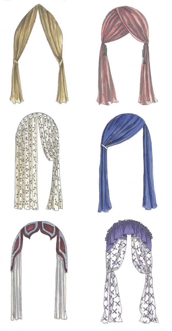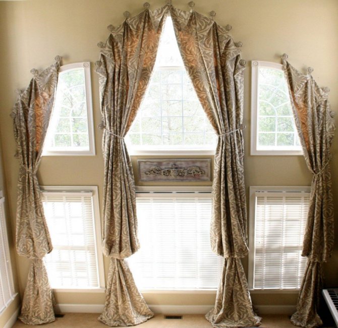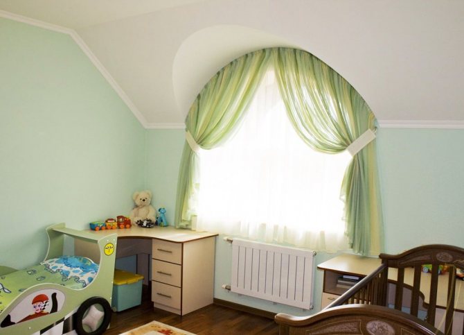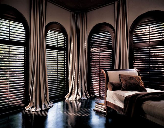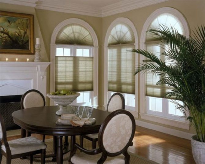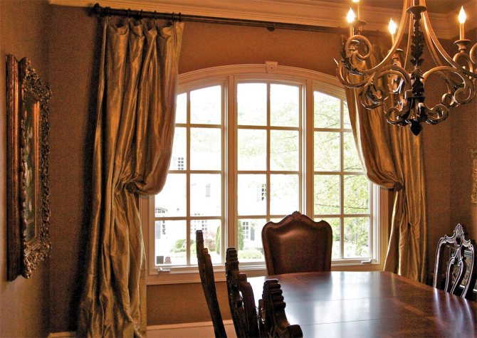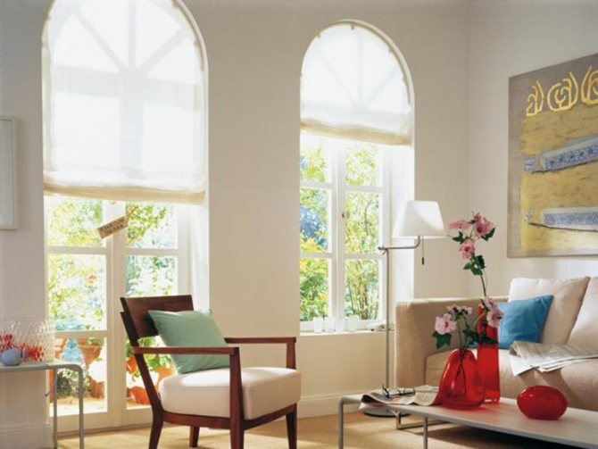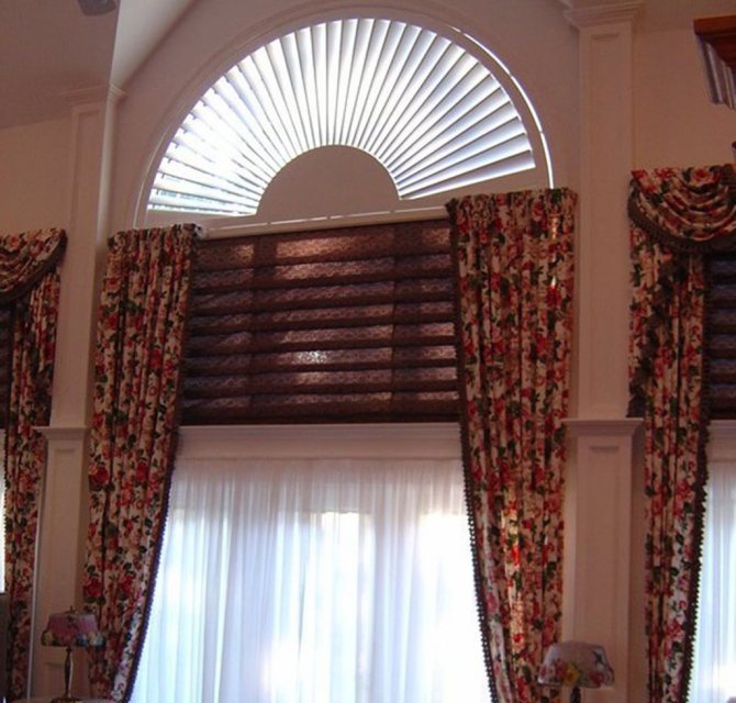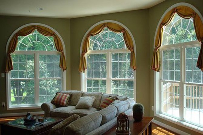 Les fenêtres en arc diffèrent également par la manière d'ouvrir, ce qui influence le choix du design textile. Les vantaux peuvent être oscillants, l'un se balançant et le second store, complètement stationnaire ou avec un toit aveugle.