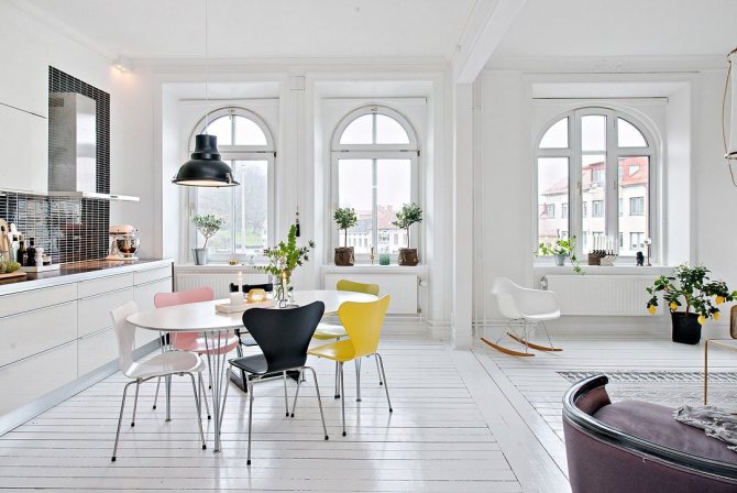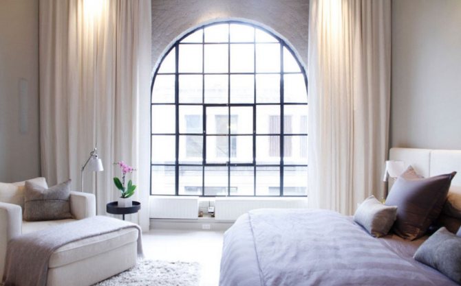 Malheureusement, dans les appartements d'un type particulièrement standard, il n'y a pas beaucoup d'options pour installer des fenêtres cintrées en demi-cercle. Les lieux de leur placement ont été pensés même lors de la conception de la structure, et il n'est donc possible de remplacer que les cadres carrés ordinaires par des cadres plus modernes et élégants.