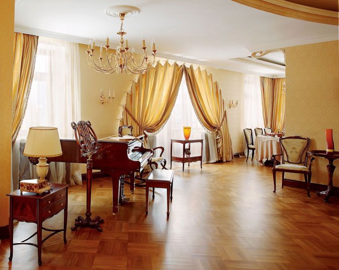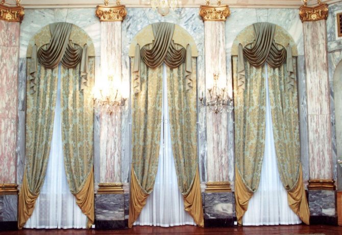 - L'envie de répéter ce qu'ils ont vu dans les palais à petit budget. La tentative est vouée à l'échec d'avance. Si le budget pour une fenêtre ne dépasse pas 150 à 200 000 roubles, n'essayez même pas de créer quelque chose de complexe, comme dans la photo de titre de l'article. Ce qui pend à Versailles n'est pas cousu dans le salon textile conditionnel des rideaux Pupkin à Yaroslavl. Ce sont des technologies et des matériaux complètement différents.