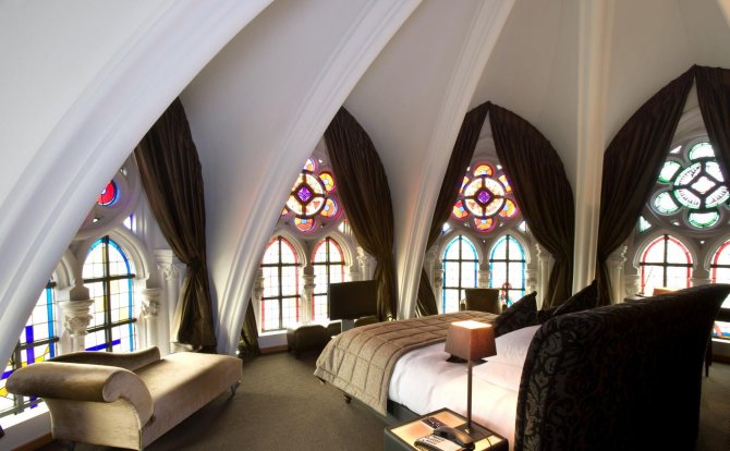Alors, vous avez de la chance, vous êtes l'heureux propriétaire d'une fenêtre cintrée. Personnellement, je ne peux qu'envier, j'ai toujours rêvé de quelque chose comme ça, mais je ne l'ai jamais eu. Comme toute personne normale, vous comprenez que votre fenêtre est inhabituelle et, tout naturellement, il vous semble qu'elle a besoin du même design non standard. Après tout, tout ce que vous saviez auparavant sur les rideaux concernait les fenêtres rectangulaires ordinaires. Que fait un homme moderne? C'est vrai, en tapant la requête "rideaux sur une fenêtre cintrée»Sur Internet et regarde des images.