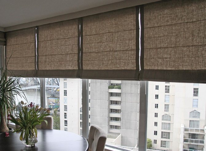 Les rideaux pliants en tissu tirent leur nom de leur origine. Ce principe de drapage des fenêtres est apparu dans la Rome antique. Les stores romains sont assemblés selon le principe des voiles des navires. Tout le tissu monte sous la corniche sous la forme de plis uniformes. Cette solution permet de ne pas encombrer l'espace déjà réduit de la loggia.