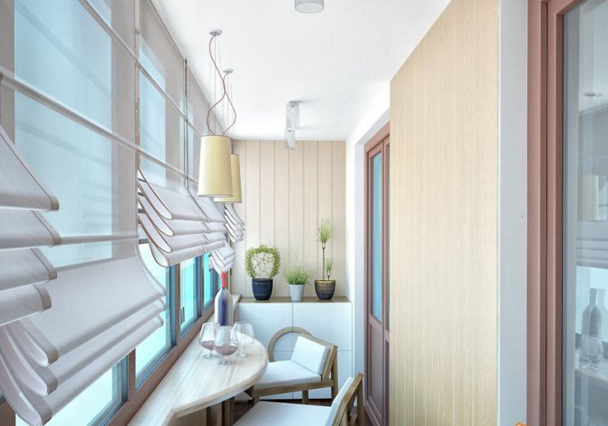 En plus de l'isolation, vous aurez également besoin de finition. Il convient également de prêter attention à cela, il est souhaitable que cette continuation de la pièce ne tombe pas de l'ensemble général de tout l'intérieur. Choisissez les bons rideaux. Parlons maintenant de cela plus en détail.