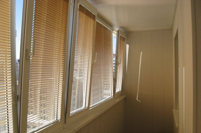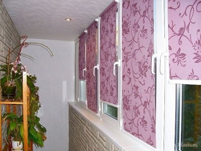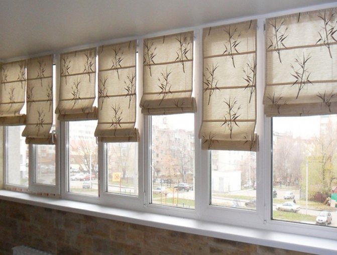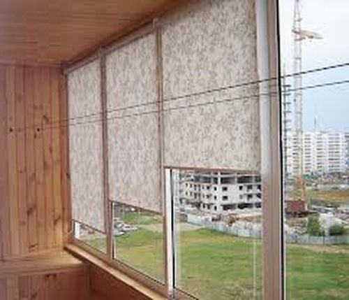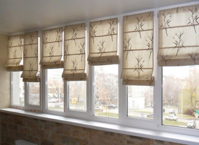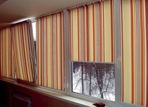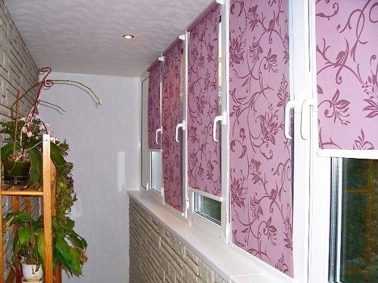 Blinds naloggia - une solution utilitaire qui conviendra si vous vous concentrez sur la fonctionnalité et non sur le visuel. Dans ce cas, utilisez des structures horizontales installées séparément sur chaque châssis.