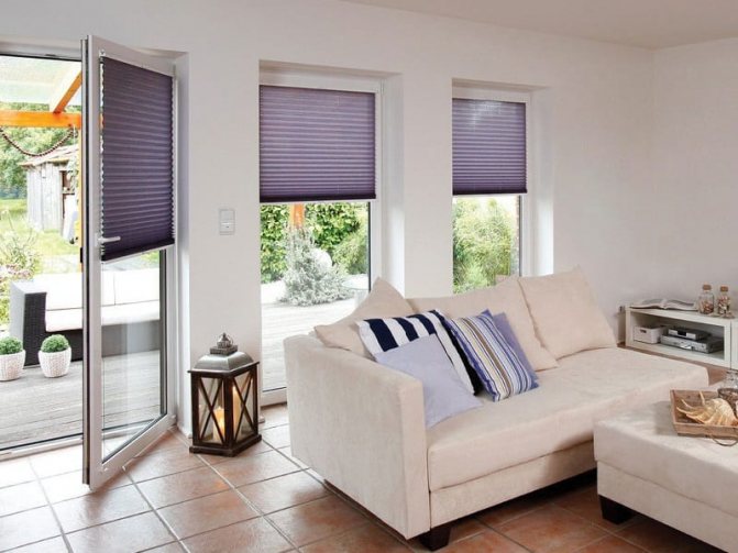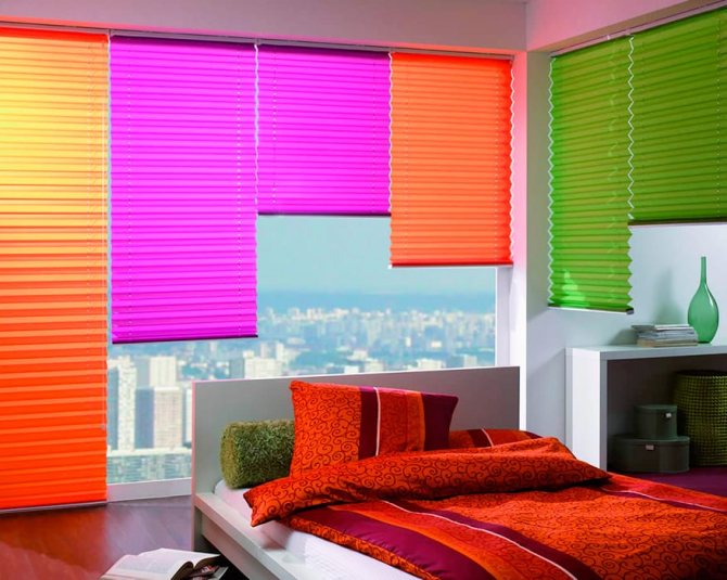 - Plisse a des lamelles qui ne se séparent pas les unes des autres - il s'agit bien sûr d'un tissu plissé d'une seule pièce. De tels stores sont moins pratiques que les précédents, car ils n'augmentent pas significativement la lumière naturelle.