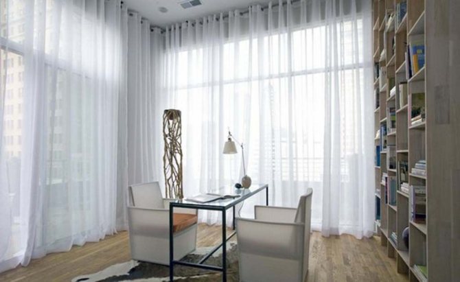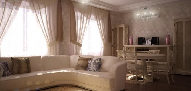- La taille de la pièce elle-même. Petite pièce - options de lumière pour les rideaux.