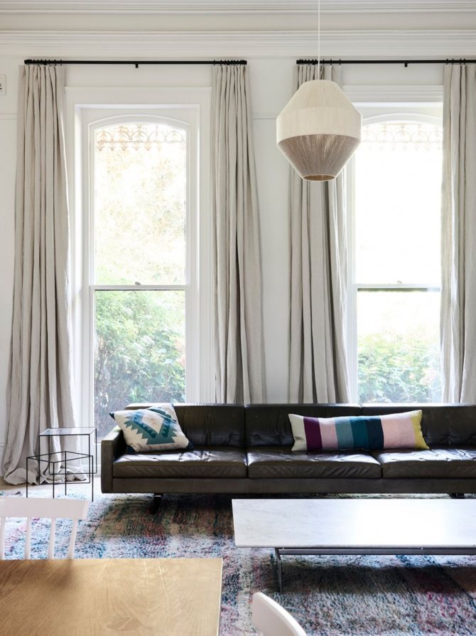 Si deux ouvertures sont situées à proximité l'une de l'autre, il est possible de les disposer dans leur ensembleS'il y a des ouvertures de fenêtre éloignées dans la pièce, il est préférable de souligner leur délimitation, et le point commun doit se manifester dans le style, la couleur, le design