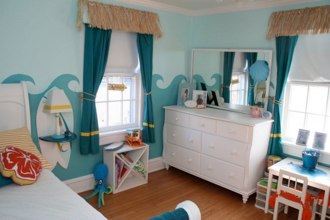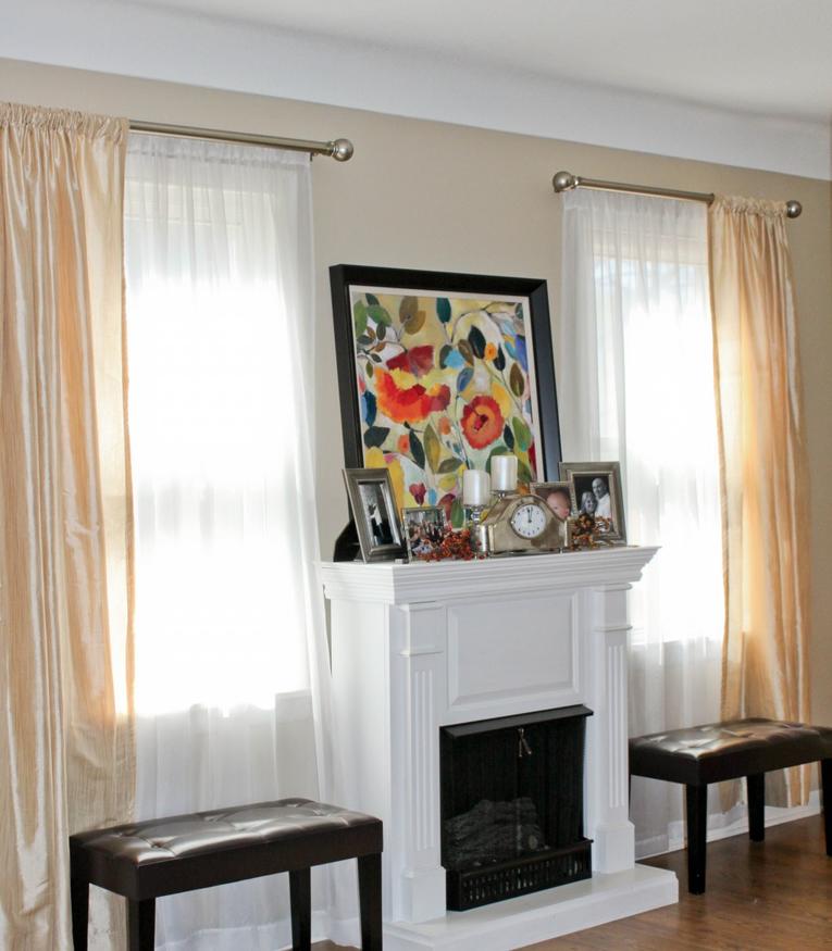 - avec une distance significative entre les fenêtres, il est préférable de les décorer avec des toiles séparées et de décorer la jetée avec une applique, un miroir, une composition décorative.