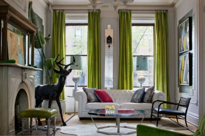 Rideaux pour le salon: options de conception pour deux fenêtres dans la pièce