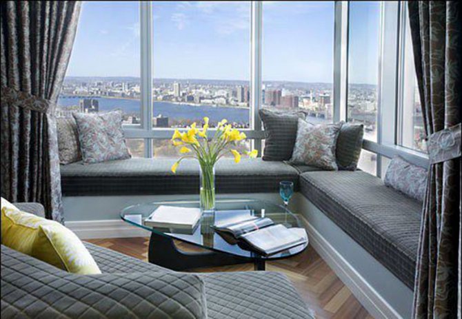 Si les fenêtres sont situées sur des murs adjacents, il est préférable de disposer les espaces de fenêtre de manière identique, jusqu'à des bagatelles telles que des corniches ou des attaches. - en face de l'autre.