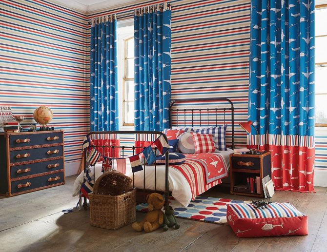 - le plafond sera visuellement rendu plus haut par des tissus avec une bande verticale, et ses rideaux légers seront "écartés".