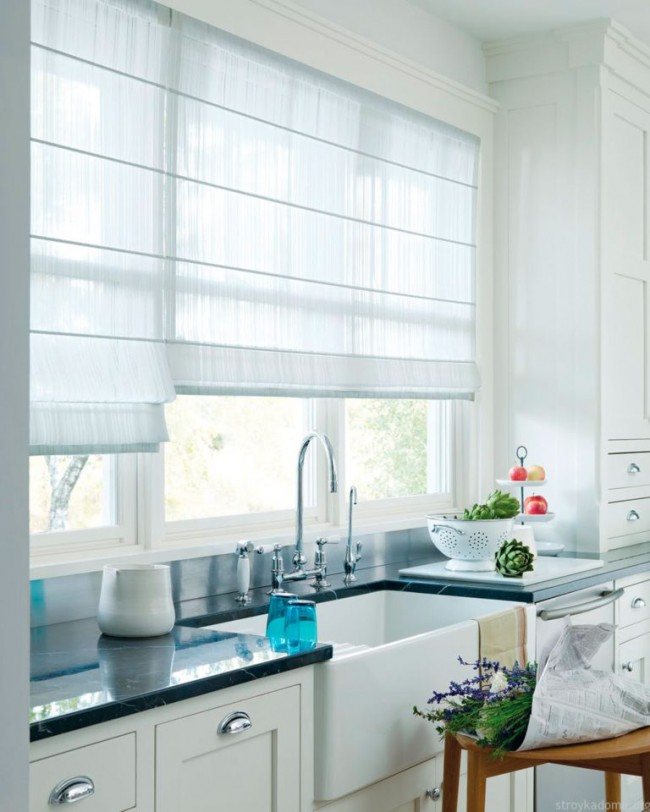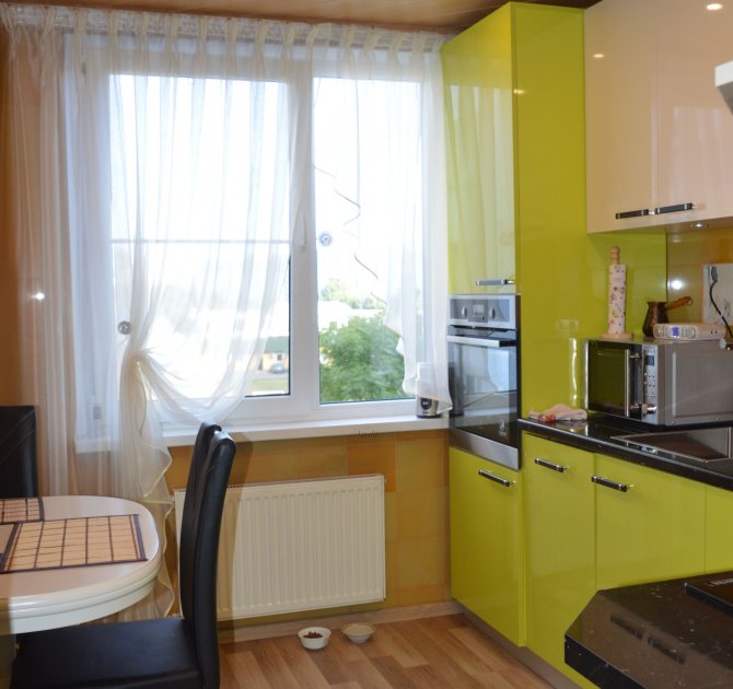 Il est clair que l'accès à la fenêtre dans cette situation doit toujours être gratuit. Dans ce cas, les longs rideaux ne seront en aucun cas appropriés; besoin de choisir option appropriée uniquement de court