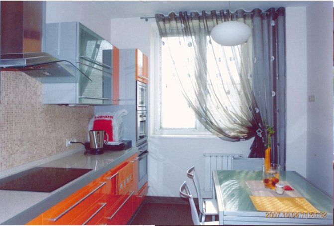 La cuisine doit être pratique et confortable. Si nous considérons un petit coin cuisine, chaque coin de celui-ci devrait être fonctionnel. Cela s'applique également au rebord de la fenêtre. Il peut servir d'étagère pour les appareils électroménagers ou comme partie d'une table à manger.