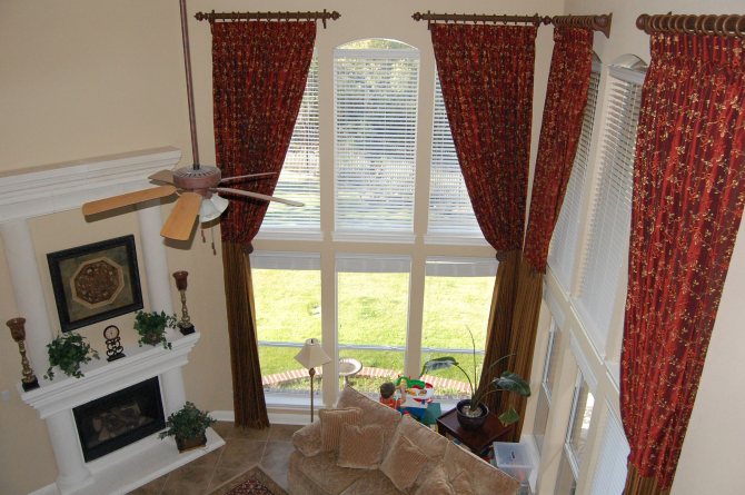 Les rideaux des grandes fenêtres ne doivent pas être surchargés d'éléments décoratifs.