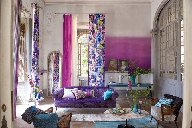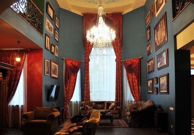 - Pour les grandes pièces - rideaux à la mode aux couleurs riches.