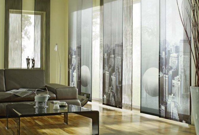 Tous ces problèmes sont facilement résolus par des rideaux. Il ne reste plus qu'à choisir lequel d'entre eux sera le plus beau sur les fenêtres panoramiques. Lors du choix, il est important de prendre en compte à la fois les fonctions principales et les principaux problèmes des fenêtres panoramiques.