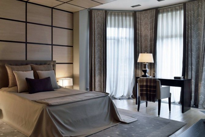 - La conception des rideaux est choisie aussi fonctionnelle que possible, de sorte que, si vous le souhaitez, l'ouverture de la fenêtre peut être facilement ouverte et également facilement fermée. N'oubliez pas que de grandes fenêtres sont là pour admirer la vue depuis la fenêtre.