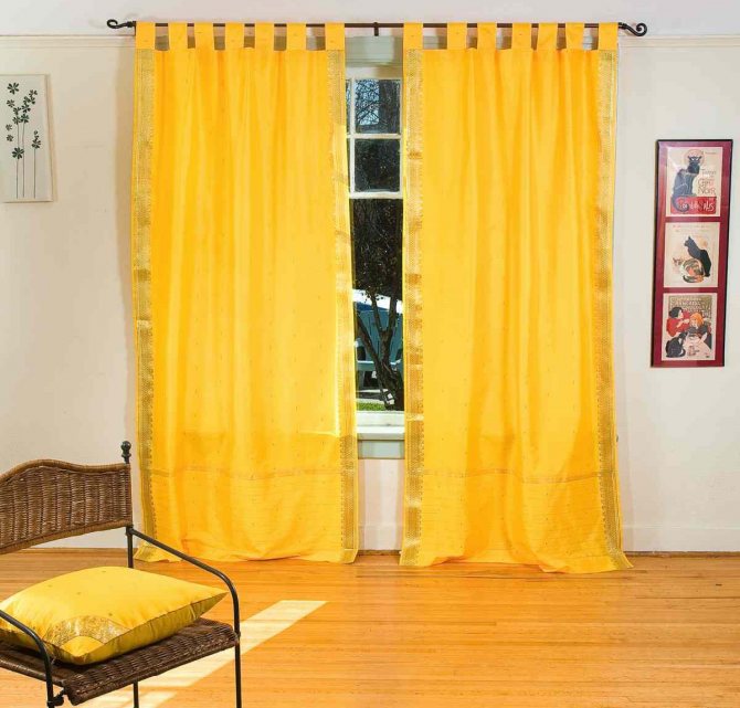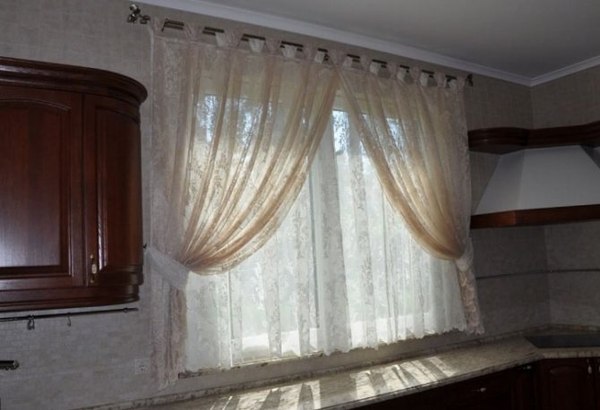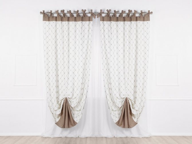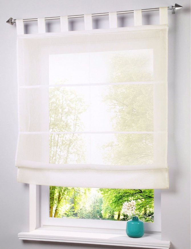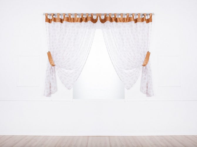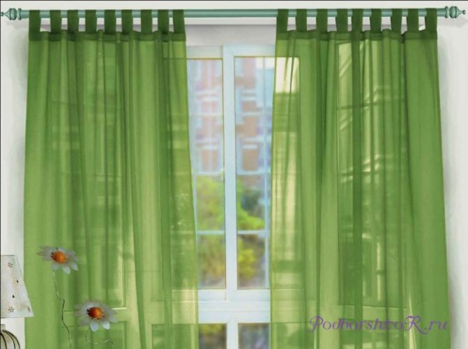 Ces rideaux sont parfaits pour n'importe quel intérieur - cuisine ou salon - peu importe! Habituellement, pour les coudre, ils prennent un tissu épais et dense avec des boucles cousues, pour lequel le rideau est attaché à la corniche. Mais ne vous précipitez pas et ne cousez pas les boucles en sourdine - il est préférable de les rendre détachables.