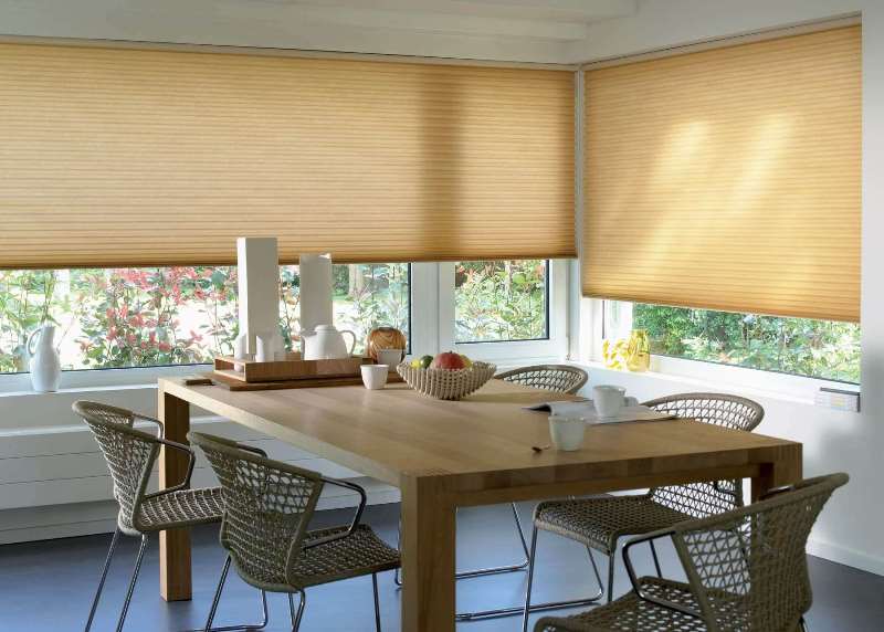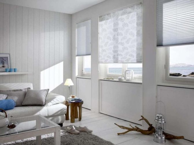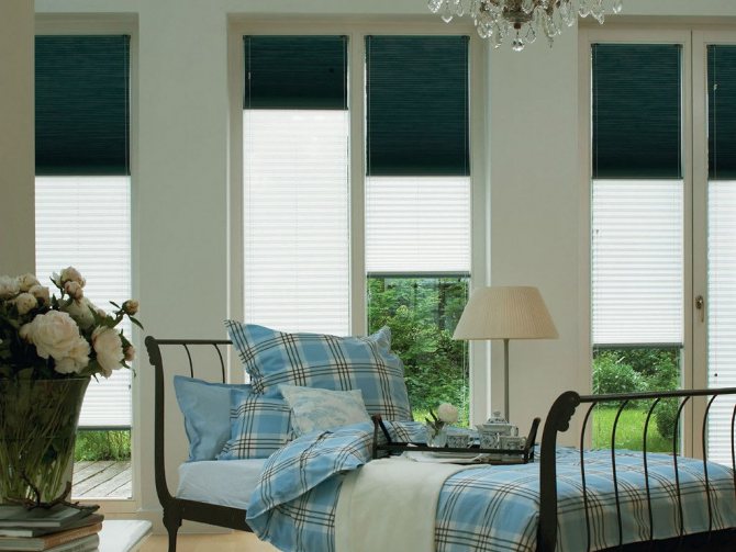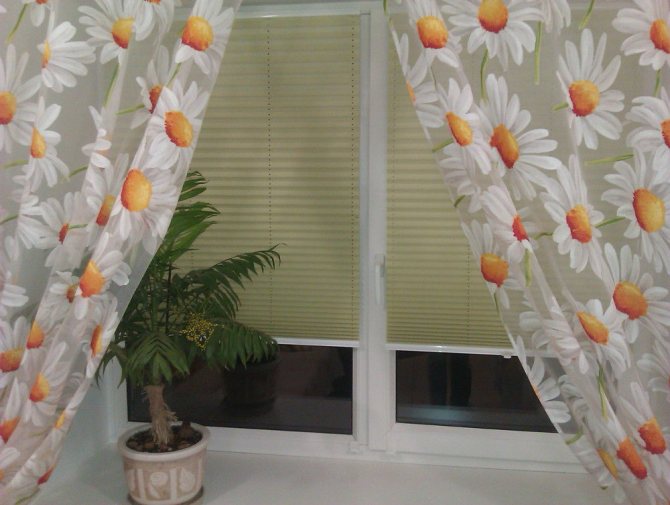 Les rideaux plissés sur les fenêtres en plastique se marient parfaitement avec les rideaux classiques, ils jouent le rôle de filtres à lumière. Ces deux types de décorations de fenêtres semblent très bien en tandem et se complètent.