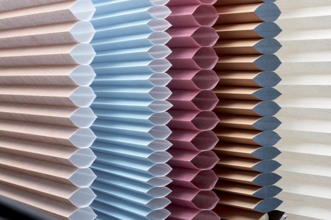 Les stores plissés diffèrent par le matériau, la forme, la taille et le type de construction.