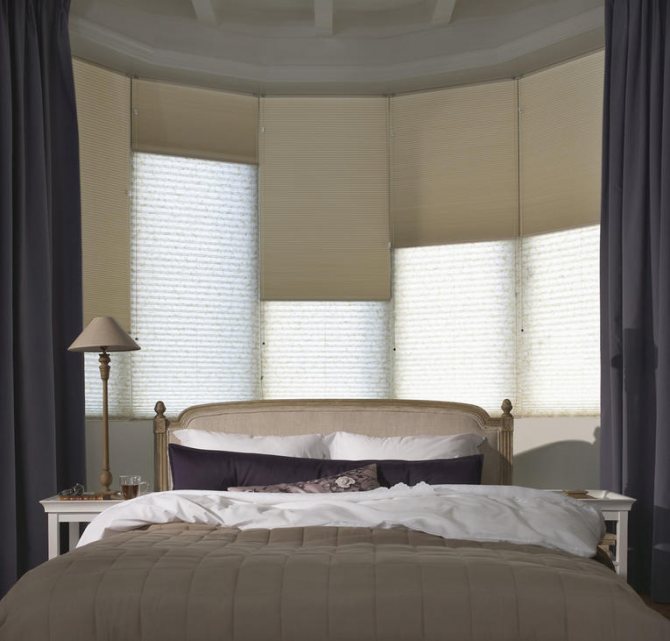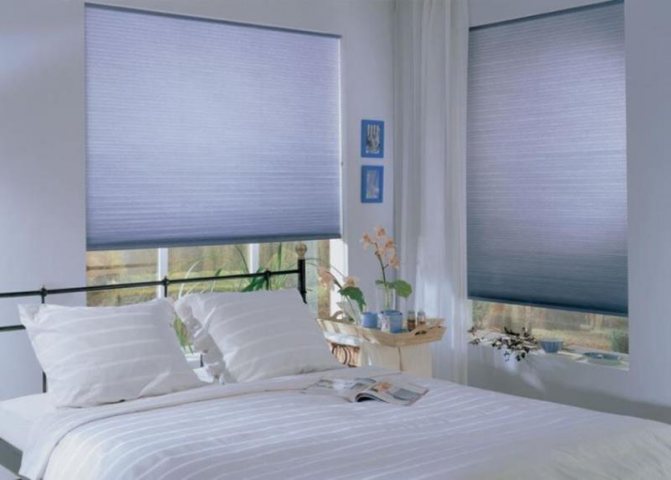 La chambre a périodiquement besoin d'une panne complète. Les rideaux plissés, surtout s'ils sont en tissu occultant bloquant la lumière, remplissent idéalement cette fonction. Et si vous choisissez un produit avec un entraînement électrique et une minuterie programmable, vous n'avez même pas besoin de sortir du lit pour soulever les toiles après le réveil et laisser entrer la lumière dans la pièce.