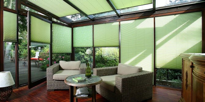Lorsque la loggia fait face au côté ensoleillé, la meilleure solution sera les produits en tissu avec un revêtement métallisé réfléchissant. Grâce à eux, une température de l'air confortable sera maintenue à la fois sur le balcon et dans la chambre.