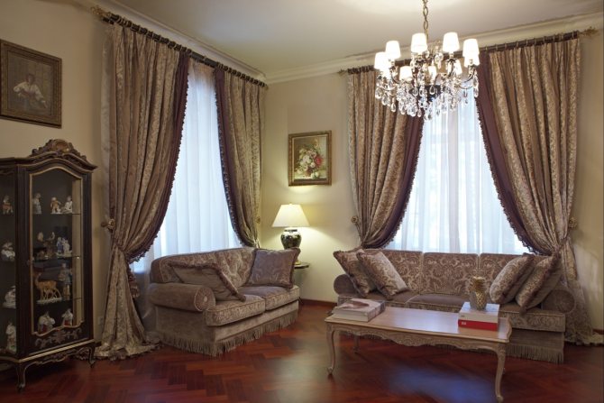 Dans les intérieurs classiques, les rideaux sont ramassés symétriquement des deux côtés, à égale distance de la pente.