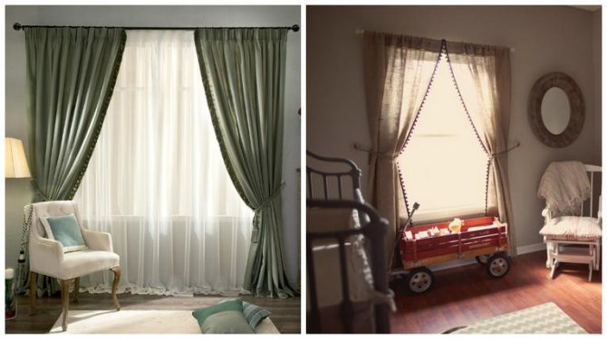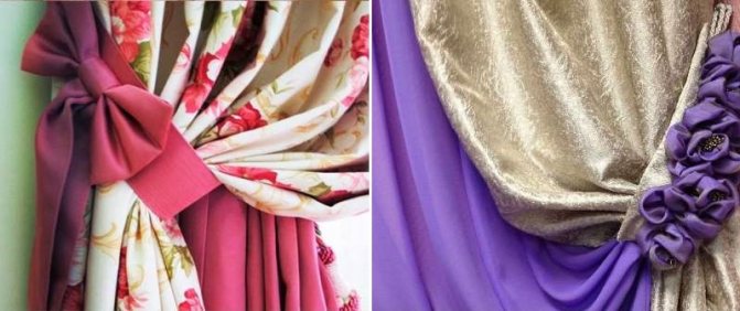 - vous permettent d'ouvrir la vue depuis la fenêtre et de laisser entrer le lampadaire dans la pièce, sans pousser les toiles sur les côtés, mais en les assemblant et en les fixant dans une certaine position;