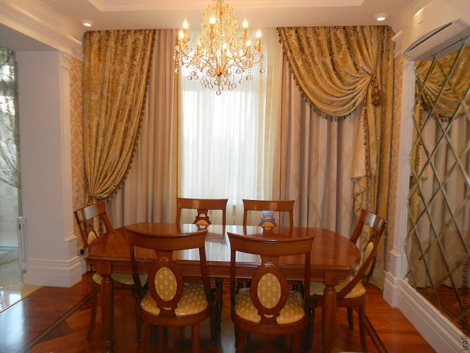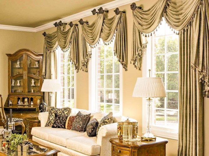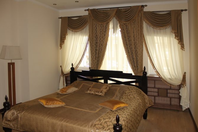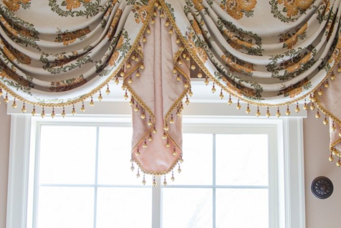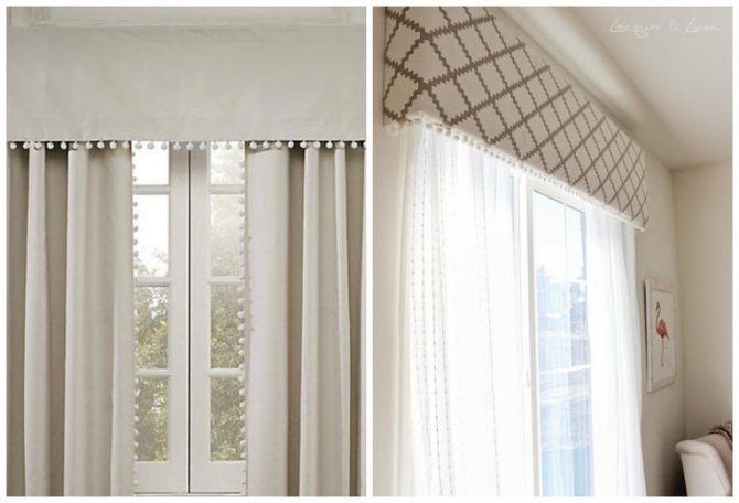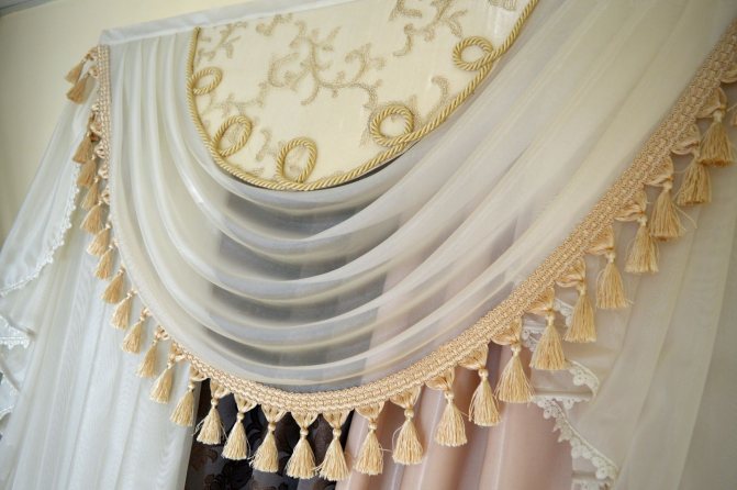 Sur la photo, des options pour couper les rideaux avec un lambrequin dur à franges.
