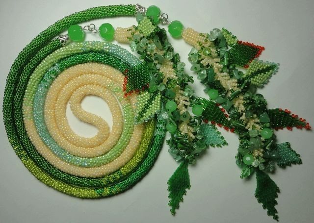 Les perles peuvent aller dans une rangée continue ou être cousues à la frange de fil uniquement par endroits. À l'aide de clairons, vous pouvez créer des compositions de mosaïques complexes ou des limites visuelles.