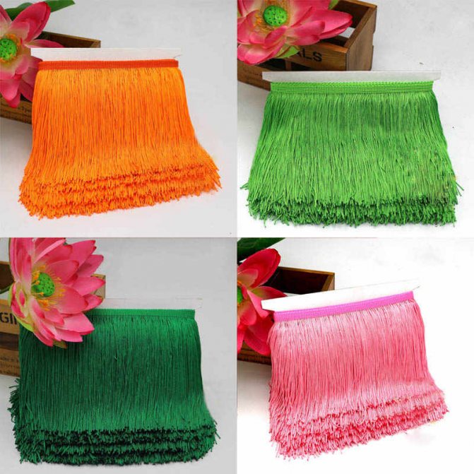La frange de fil est populaire et disponible dans une large gamme. Ils viennent dans différentes largeurs ou couleurs. Cousu sans problème, même une fille d'âge scolaire peut le faire.